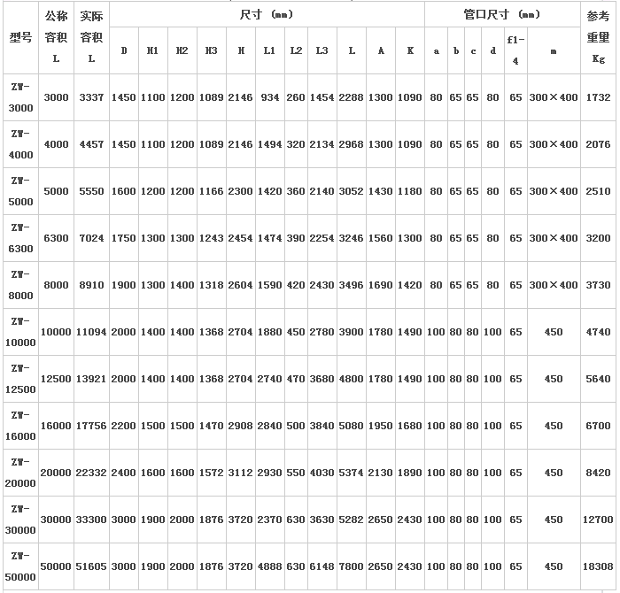 6.ZW系列儲罐主體尺寸符臺HG/ T2371-92. GB:T 25027-2010標(biāo)準(zhǔn),并在此基礎(chǔ)上進(jìn)行了改進(jìn)。